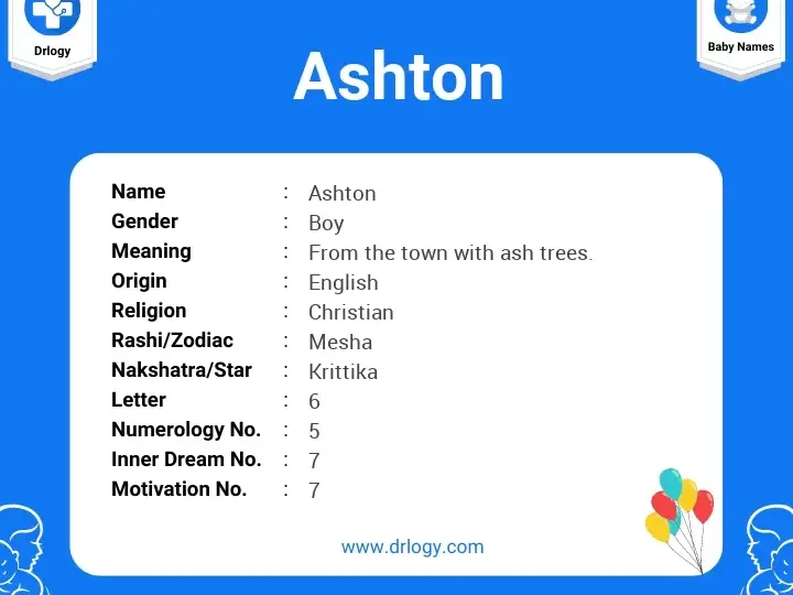 The first name Ashton does not have a direct reference in the Bible. It is of English origin and means “ash tree town” or “town near the ash tree”. The name might have been inspired by the word “ash” which could symbolize strength, stability, and rootedness, qualities that are often associated with trees in general.